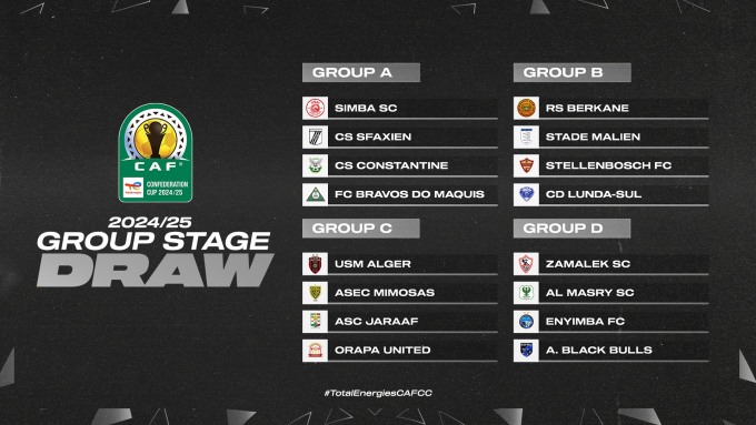 Elsewhere, Group A features Tanzanian club Simba SC, Tunisian side CS Sfaxien, Algeria’s CS Constantine, and Angola’s Bravos do Maquis.