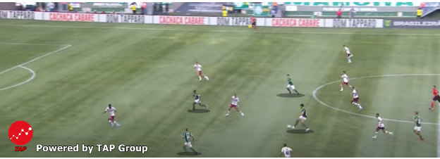 For example, Fluminense often adopt atypical approaches to build-up, with dual winger overloads meaning that both wingers occupy the same flank to help progress the ball. The players are often given more freedom than what you’d see normally with teams that adopt positional play tactics, hence why Diniz is often lauded by some as the founder of ‘Relationsim‘.