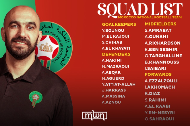 Noussair Mazraoui, Amir Richardson, Adam Masina, and Brahim Diaz have also made a return to the squad as Morocco set to Gabon in Gabon on November 15 and then Lesotho three days later.